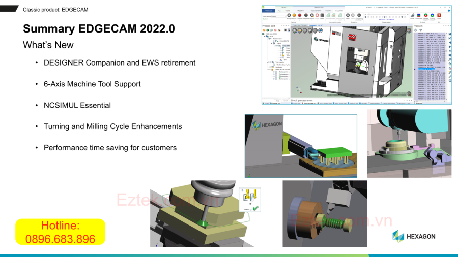 - Cập nhật tính năng mới: Hexagon thường xuyên phát hành các phiên bản mới của Edgecam với nhiều tính năng cải tiến và tối ưu hóa, giúp nâng cao hiệu suất làm việc.